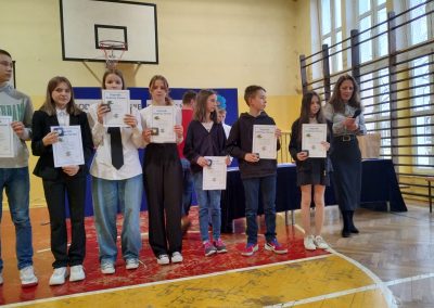 W środę 24 stycznia 2024 roku odbył się Apel podsumowujący I półrocze dla klas 6-8 w budynku A. Uczniowie klasy 6 i 8 przypomnieli swoim kolegom i koleżankom oraz nauczycielom co wydarzyło się w życiu klas VI-VIII, a także przedstawili najważniejsze sukcesy w zawodach sportowych oraz osiągnięcia w konkursach. Laureaci otrzymali dyplomy i nagrody. Podczas apelu Pani Dyrektor Barbara Karwat wręczyła nominacje do Stypendium Dyrektora Szkoły oraz Srebrne Tarcze.