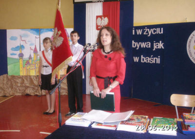 28 czerwca 2013 roku o godzinie 10.30 odbyło się uroczyste zakończenie roku szkolnego dla klas IV i V. Pani dyrektor Barbara Karwat podczas przemówienia długo wymieniała sukcesy uczniów, odniesione w konkursach miejskich , powiatowych oraz ogólnopolskich. Najlepsi uczniowie otrzymali nagrody książkowe i świadectwa z wyróżnieniem. W imieniu Rady Rodziców gratulacje oraz życzenia udanych wakacji, złożył pan Krzysztof Rutkowski. Uroczystość zakończyła się występem uczniów z klasy V c, którzy pod opieką wychowawczyni Małgorzaty Góreckiej, wystawili spektakl pod tytułem ,,Zielona Wyspa Banana.”