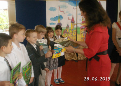 28 czerwca o godzinie 800 w sali gimnastycznej naszej szkoły odbyło się uroczyste zakończenie roku szkolnego 2012/2013. W uroczystości wzięli udział uczniowie klas „0” oraz pierwszaki. Po wprowadzeniu sztandaru szkoły i odśpiewaniu hymnu państwowego, pani dyrektor Barbara Karwat przywitała wszystkich zebranych uczniów, rodziców i nauczycieli. Następnie podsumowała roku szkolny, prezentując osiągnięcia naszych uczniów w bieżącym roku szkolnym. Za swe osiągnięcia, uczniowie otrzymali nagrody i wyróżnienia. Po złożeniu wakacyjnych życzeń przez panią dyrektor, uczniowie wraz z wychowawcami udali się do klas na rozdanie świadectw.