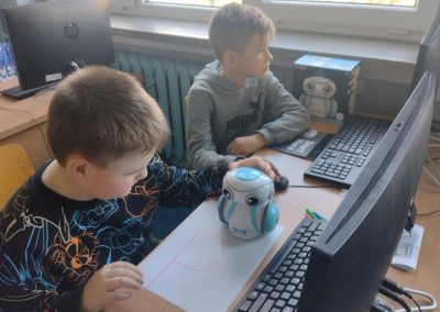 W ramach programu Laboratoria Przyszłości nasza szkoła pozyskała nowoczesny sprzęt do pracowni komputerowej. Uczniowie klasy 4C zapoznali się dzisiaj z robotami Artie 3000, poznali ich funkcje i możliwości ich programowania. Dzieci nie miały zbyt dużych problemów z zapisaniem odpowiedniego kodu dla swoich robotów. Artie okazał się być bardzo przyjazny i sympatyczny. Kolejne zajęcia na pewno będą równie interesujące.