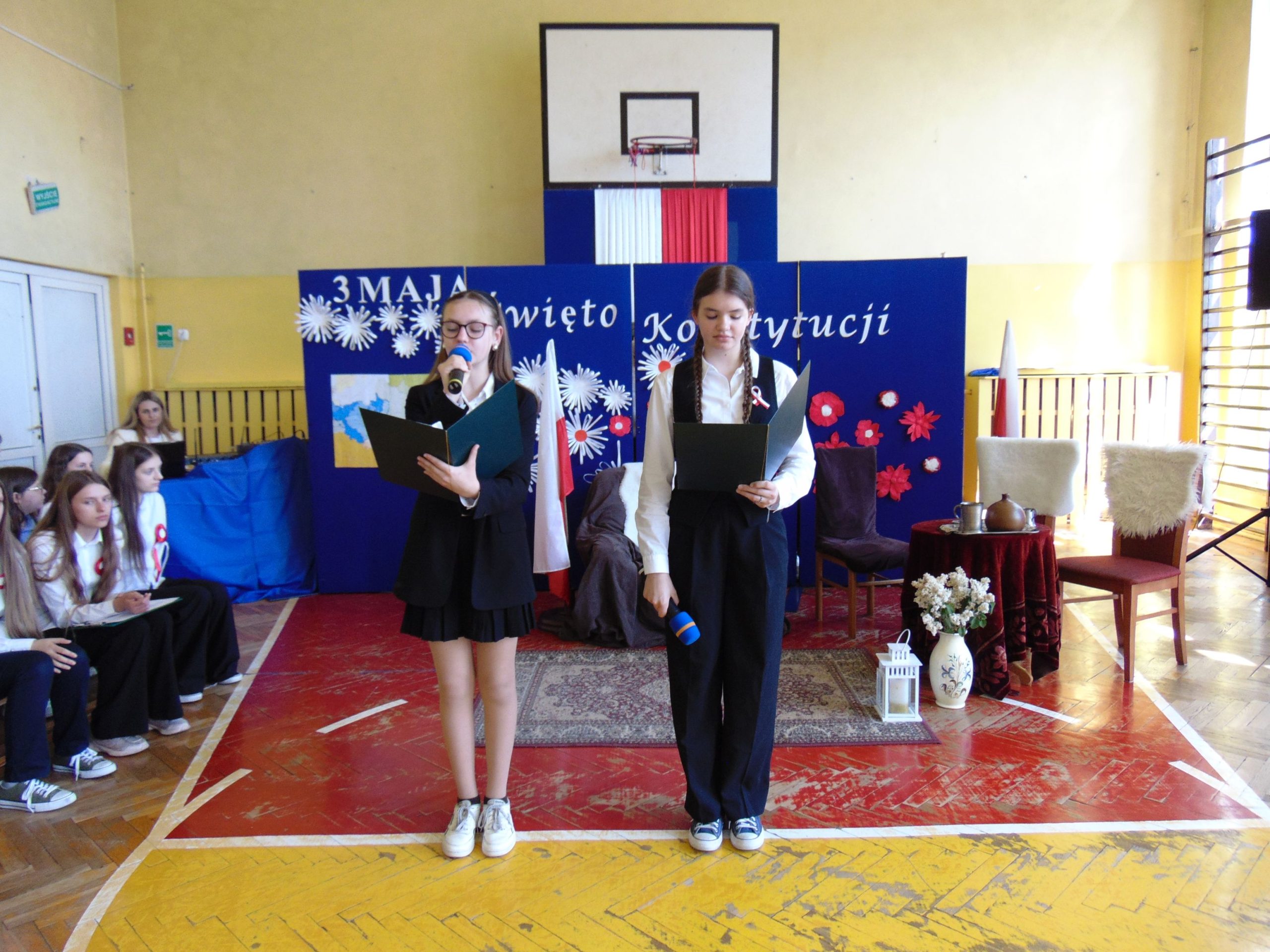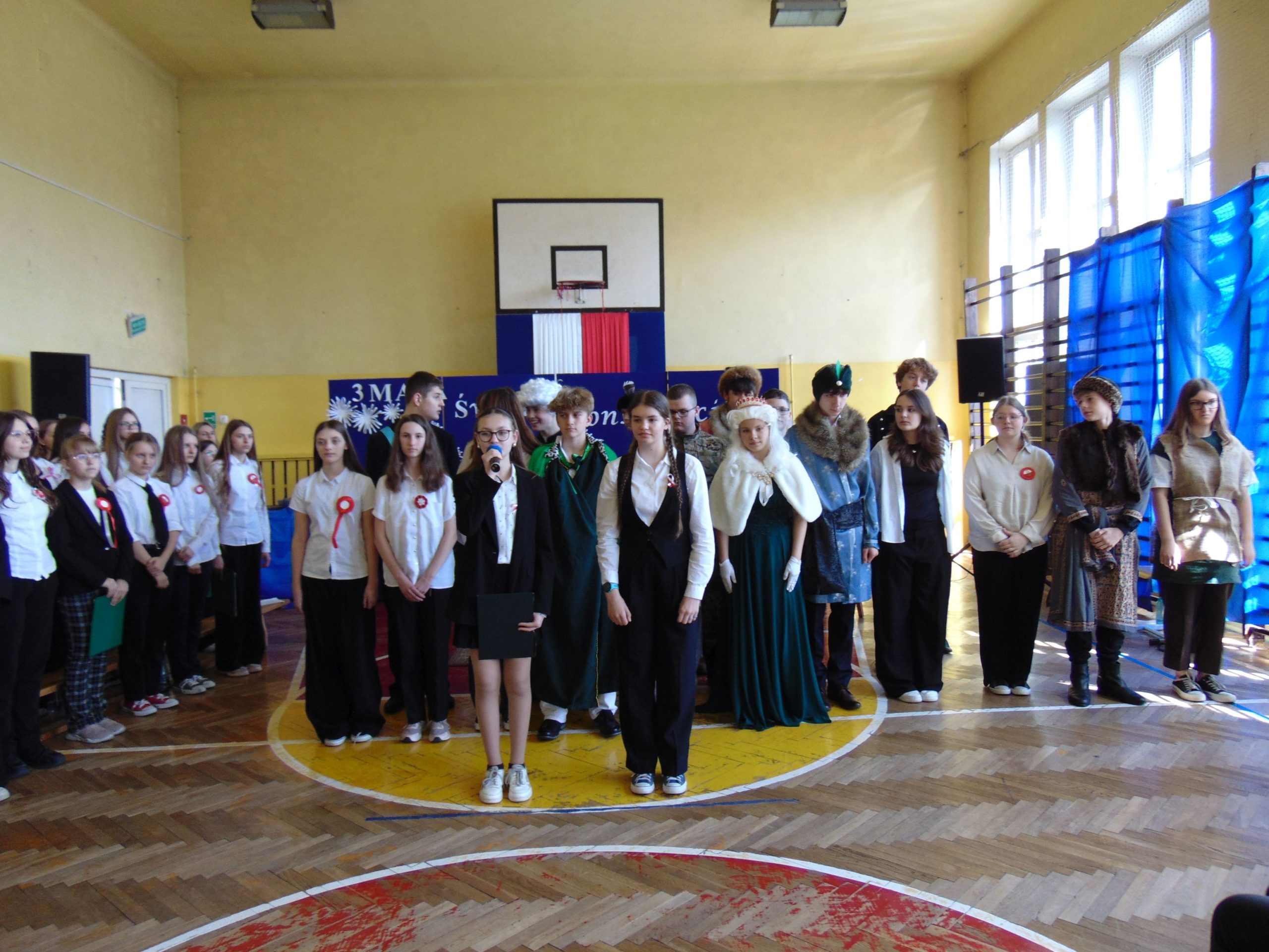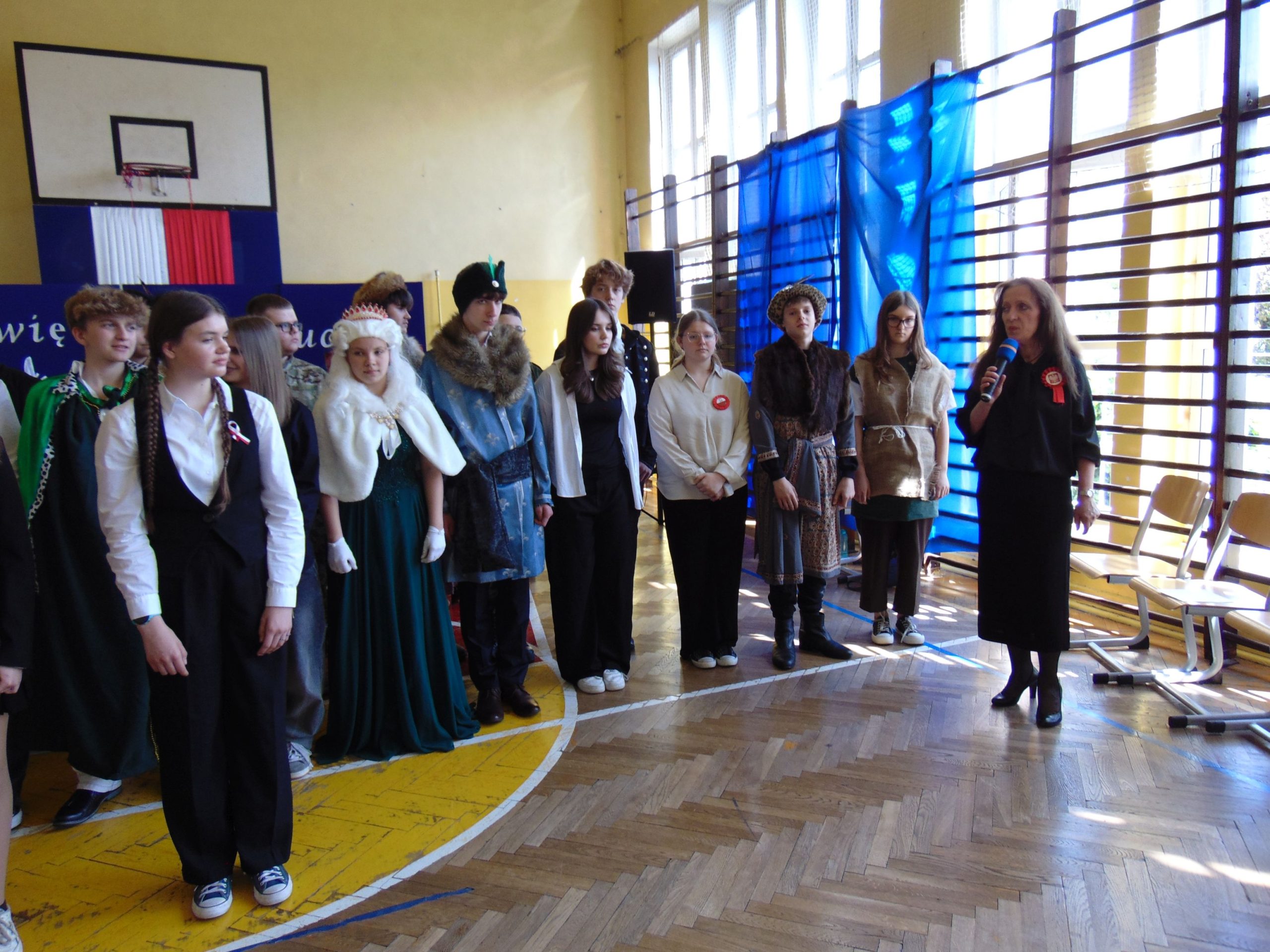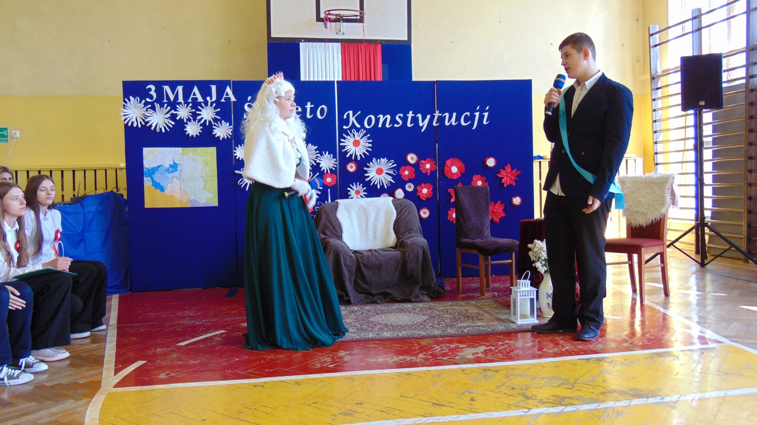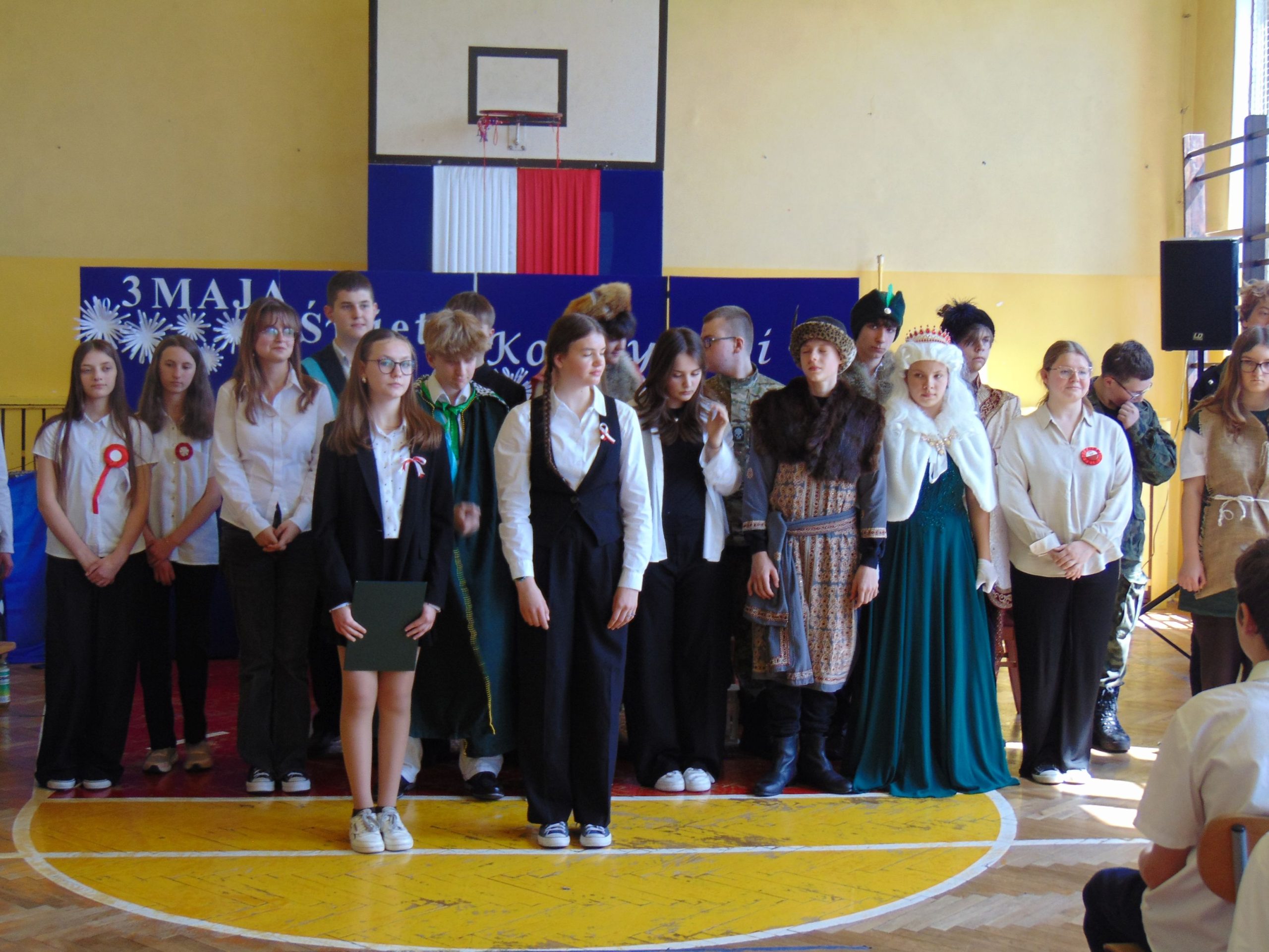 Wspaniale zaprezentowali się młodzi aktorzy, odtwarzając sceny z obrad Sejmu Wielkiego, z udziałem postaci takich jak król, szlachta, posłowie czy przedstawiciele stronnictw politycznych. Całość dopełniły poruszające utwory wykonane przez szkolny chór oraz piękne solo uczennicy z klasy 7.