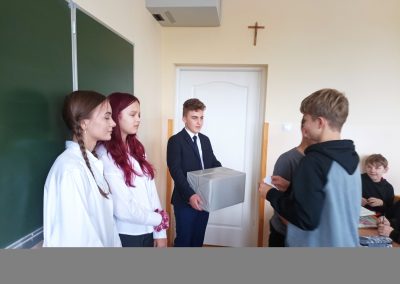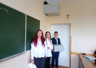 W dniu wyborów swój głos oddało 444 uczniów na 497 uprawnionych do głosowania. Po przeliczeniu głosów przez Komisję Skrutacyjną stwierdzono, że Przewodniczącym Samorządu Uczniowskiego zostaje Igor Zasada. Pierwszym zastępcą przewodniczącego – Kłoda Nina a drugim zastępcą przewodniczącego Ploch Tadeusz.
