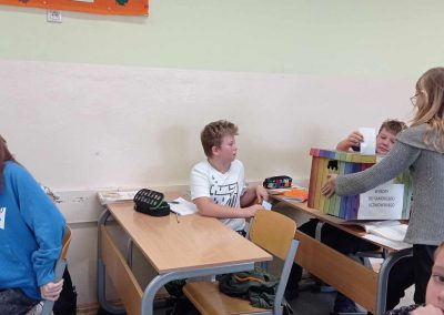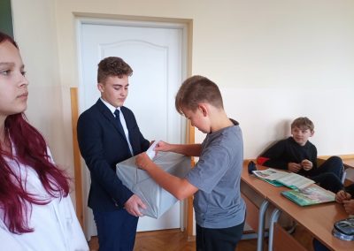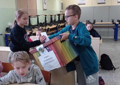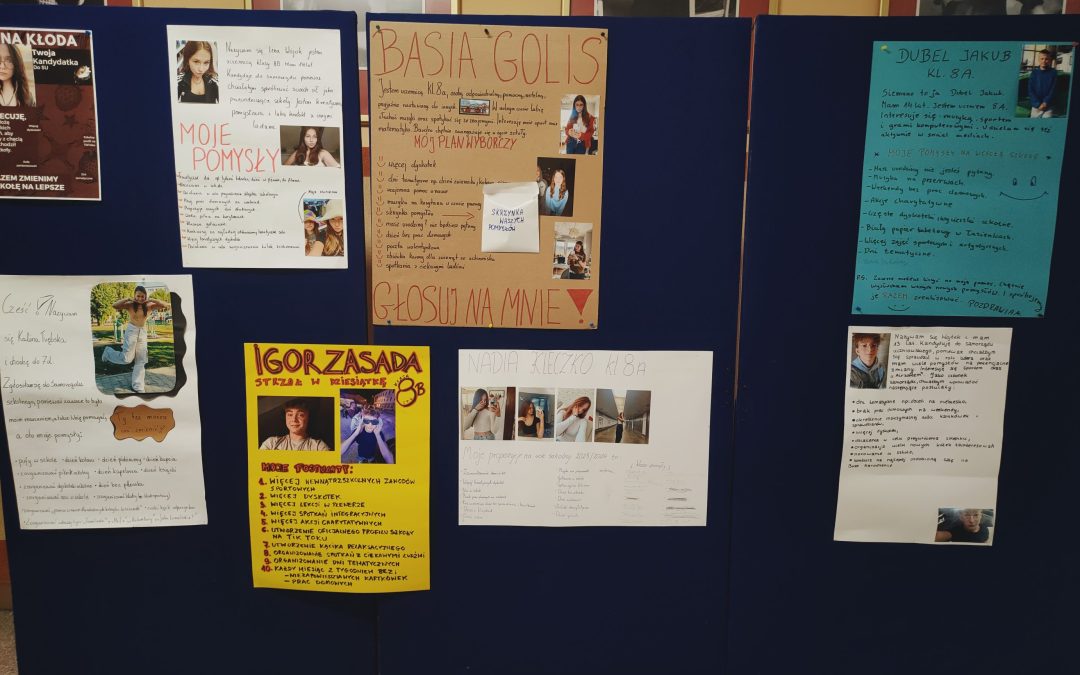 12 października 2023 r., jak co roku, w naszej szkole przeprowadzone zostały wybory do Rady Samorządu Uczniowskiego. Z klas 4-8 kandydowało 12 uczniów. Przedstawili oni swoje propozycje działań na obecny rok szkolny. Zadania umieścili na plakatach wyborczych rozwieszonych w budynku A i budynku B. Przez ponad tydzień uczniowie naszej szkoły mogli zapoznać się z postulatami kandydatów.