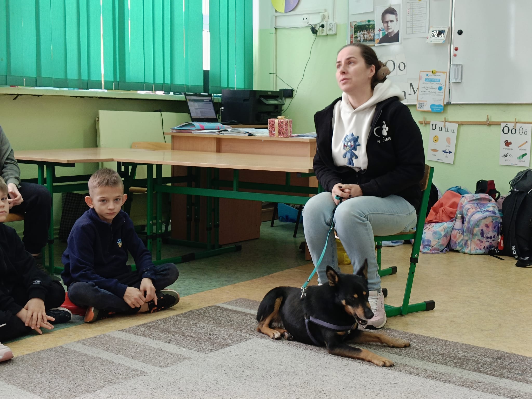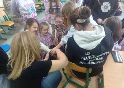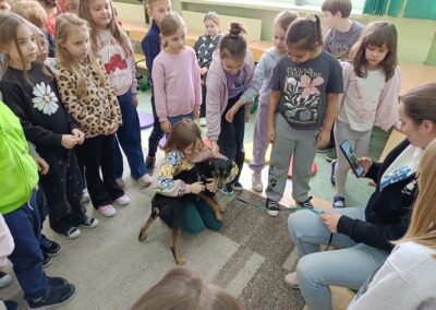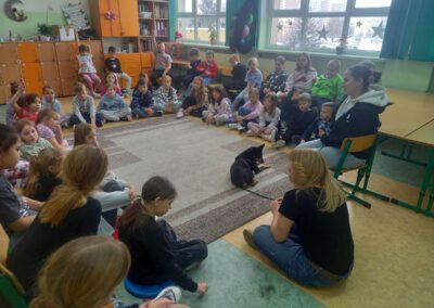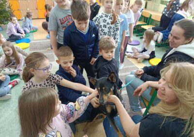 We wtorek 13 stycznia uczniów klasy 1A oraz 1D odwiedzili wyjątkowi goście – wolontariuszka Magda oraz suczka Fendi ze skierniewickiego schroniska. Wolontariuszka Magda przekazała dzieciom bardzo dużo informacji na temat funkcjonowania schroniska oraz jego podopiecznych. Uczniowie dowiedzieli się, czym zajmują się wolontariusze ze schroniska, jak wygląda proces adopcyjny zwierząt oraz w jaki sposób można im pomóc, a także jak prawidłowo opiekować się swoimi zwierzętami. Wizyta dostarczyła dzieciom wiele bardzo cennych informacji, a także zwróciła ich uwagę na potrzeby bezbronnych zwierząt jednocześnie ucząc wobec nich troski, empatii i współczucia. Wizyta była związana ze zbiórką karmy dla podopiecznych skierniewickiego schroniska. Zachęcamy do włączenia się do tej zbiórki poprzez przynoszenie mokrej karmy dla psów i kotów w puszkach lub saszetkach.
