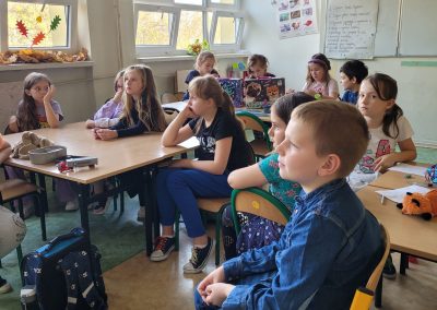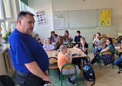 W ramach projektu edukacyjnego „Pasje naszych rodziców” mieliśmy na świetlicy już dwa spotkania z panem Sławomirem Sidorem – pasjonatem fotografii. Pan Sławomir opowiadał uczniom klas drugich i trzecich o swoim hobby. Pokazał dzieciom różne obiektywy oraz swoje zdjęcia, których nie robi przeciętny fotografik. Dzieci zafascynowane były zdjęciami Księżyca, Jowisza, stacji kosmicznej, kropli wody, kolorowych płynów wyciekających z naczyń, zwierząt, budynków. Ważnym elementem spotkania było bezpieczne używanie aparatu fotograficznego – robienie i publikowanie zdjęć za zgodą tych, którym robiona jest fotografia.